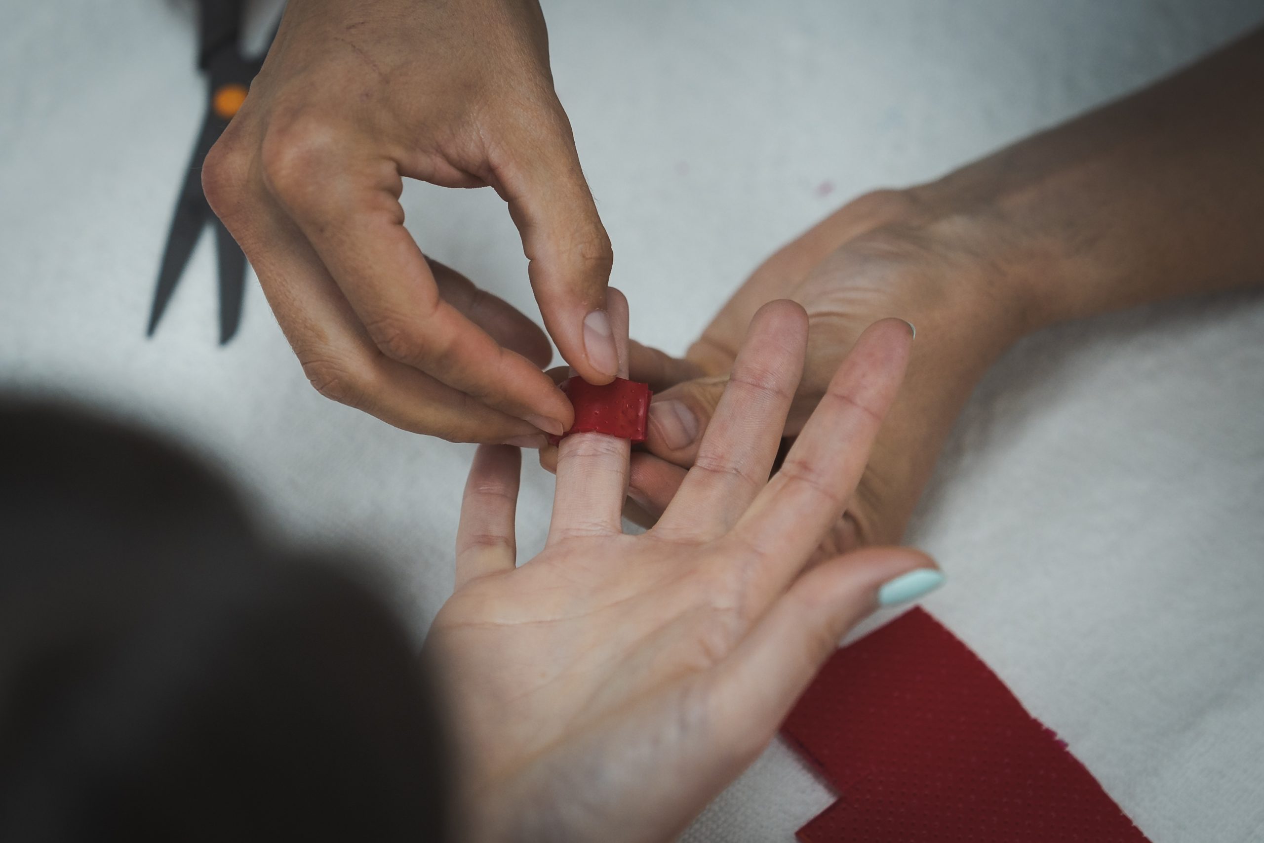 El fisioterapeuta utilitza materials termoplàstics per modelar la fèrula segons l’anatomia i les necessitats del pacient.